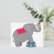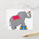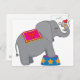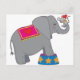Ein Zirkuselefant, der auf einer Zirkuswanne stehend ist, hat eine Maus mit rotem Herz auf ihrem Kofferraum.