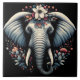 Ein aufwändig entworfener Elefant steht majestätisch, mit schönen Blumenmustern geschmückt. Das sanfte Licht der Dämmerung verstärkt seine Eleganz, symbolisiert Kraft und Schönheit in der Natur.