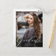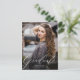 Une invitation élégante et moderne à la graduation recto verso avec une belle police de script calligraphique. Ce design photo unique vous permettra de présenter votre photo senior préférée. Le dos de la carte contient quatre photos supplémentaires, et de l'espace pour les détails d'une fête de remise de diplômes, ou tout autre message que vous souhaitez ajouter.