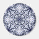 Un mandala kaléidoscope joliment détaillé en bleu et blanc qui ressemble à de la porcelaine fine ou damas. Ce design élégant est imprimé sur un aimant.