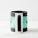 Feiern Sie mit dieser Tasse das 11. türkisfarbene Hochzeitstag. Elegante weiße Schriften auf gelbem Marmor und grünlich blauem Hintergrund verleihen diesem besondere Anlass und Meilenstein eine unvergessliche Touch. Personalisieren Sie mit den Namen des Paares und den Jahren der Ehe. Umkehrung zeigt identisches Design. Hinweis: Dieses Design ist für 11 oz Tasse optimiert. Design © W.H. Sim, Alle Rechte vorbehalten. Weitere Informationen unter zazzle.com/expressionsoccasions