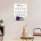 Cet élégant tableau de sièges de mariage comporte 14 tables et présente un design romantique, sophistiqué et magnifique. Avec des tables de 140 places et 10 places par table, ce tableau fournit de nombreux aménagements pour votre réception de mariage. Le design se compose d'un seul rose royal violet à longue tige couché sur son côté et réfléchissant dans un bassin d'eau. Le titre, "Bienvenue! s'il vous plaît trouver votre table," est écrit en calligraphie de script sophistiquée, tandis qu'il y a de l'espace disponible pour les noms du couple et la date mariage en bas. Ce tableau de sièges est une façon merveilleuse d'ajouter beauté, classe et style à votre réception de mariage tout en facilitant la recherche de sièges par vos invités.