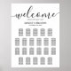 Tableau de sièges mariage moderne avec un arrière - plan blanc élégant, le mot "bienvenue" dans une police élégante de script de calligraphie, vos noms, date mariage et un tableau de sièges mariage modèle de 22 tables.