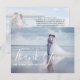 Ein elegantes Design für Sie, um mit Ihren Hochzeitsfeiern Fotos zu personalisieren. Wählen Sie zwei Ihrer liebsten horizontalen Bilder Ihres Hochzeitstages. Im Idealfall wählen Sie einen, wo die beiden von Ihnen nach rechts verlegt sind und einen anderen, wo Sie zum links sind. Verwenden Sie als Beispiel die Beispiel-Foto. Die Textfarbe kann so geändert werden, dass sie sich mit Ihrem Foto abstimmt. Auf der Rückseite fügen Sie eine persönliche Nachricht hinzu. Um die Lesbarkeit zu gewährleisten, wurde eine halbtransparente Ebene über das Foto eingefügt, die ihm ein sanftes romantisches Aussehen verleiht. Verwenden Sie den Beispieltext erneut als Anleitung für die Länge. Der Text kann durch das Menü Bearbeiten verschoben werden. Oder kontaktieren Sie den Designer, der das für Sie tun kann. Ein eleganter Hochzeitsskript-Schriftart wurde verwendet.