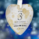 Célébrez le 3e anniversaire du mariage en cuir avec cet ornement commémoratif! Un élégant lettrage noir avec des confettis hexagonaux dorés sur un luxueux arrière - plan en cuir blanc bordé d'un contour stylisé d'un coeur en feuille d'or feuilleté apporte une touche mémorable à cette occasion spéciale et à cette étape. Customisez avec les noms du couple et la date du mariage. Reverse affiche un design identique. Design © W.H. Sim. Voir plus sur zazzle.com/expressionsoccasions