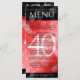 Mit diesem Dinner-Menü, das elegante Buchstaben und sechseckige Konfetti auf rubinroten und schwarzen Hintergründen bietet, verleihen Sie dem 40. rubinischen Hochzeitstag eine raffinierte Note. Passen Sie Ihre persönlichen Daten mit Namen, Ehedaten, Veranstaltungsdetails, Menüpunkten und Glückwunschnachrichten an. Design © W.H. Sim. Weitere Informationen unter zazzle.com/expressionsoccasions