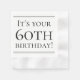 Dieses elegante und angesehene Geburtstagsdesign aus Papierservietten enthält eine Nachricht wie "Es ist dein 60. Geburtstag!", in der die Geburtstagsnummer personalisiert werden kann. Personalisierte Papierservietten wie diese können bei einem Party zum Geburtstag von jemandem verwendet werden.