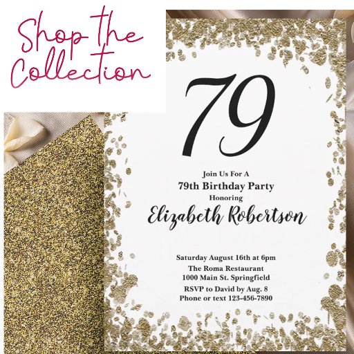 Elegant 79th Birthday Invitation With Gold Sequins Einladung