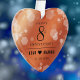 Célébrez le 8e anniversaire du mariage de bronze avec cet ornement acrylique commémoratif! Des lettres élégantes avec des confettis hexagonaux sur un arrière - plan de feuille de bronze ajoutent une touche mémorable pour cette occasion spéciale et cette étape importante. Customisez avec les noms du couple et la date du mariage. Reverse affiche un design identique. Utiliser tel quel ou remplacer par une photo. Ce design est optimisé pour les formes cercle, ovale, coeur et chemise. Design © W.H. Sim. Voir plus sur zazzle.com/expressionsoccasions