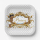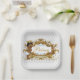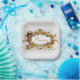 Adorable afrikanische Prinz mit einer Goldkrone mit weißen Windeln und blauen Hausschuhen auf einem extravaganten, goldenen filigranen Rahmen auf weißem, diamantenkonturiertem Hintergrund. Passen Sie Bannertext an! ©2022 Miss Sassy Party Designs