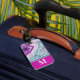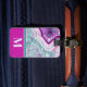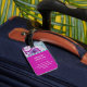 Eleganter Turquoise Magenta Stone Initial Monogram Gepäcktag. Agate-Kristalle und Geoden bleiben ein beliebter Trend! Dieser Druck zeichnet sich durch ein nahes Bild eines türkisfarbenen und lila (magenta) Geostatsteins aus, mit kleinen Kristallen und weißem Band. Mit lebendigen Farbblockern angereichert, um ihm einen modernen und trendigen Look zu verleihen. Fügen Sie Ihre Initialen hinzu, um es zu Ihrem eigenen zu machen.