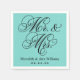 Hochzeitsnapkins zeigen "Mr. & Mrs." in einem Schriftart mit schwarzer Kalligraphie, in dem eine maßgeschneiderte Monogramm-Gestaltung mit dem verheirateten Namen und dem Hochzeitsdatum der Braut und des Bräutigams personalisiert werden kann. Aqua Blau und Schwarz Farbschema.