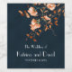 Dieses Hochzeitsweinflaschenlabel ist so elegant, minimalistisch blumengeschmückt und kontrastiert wunderbar mit dem dunklen Marinefarben. Der elegante san serif Schriftart auf weißer Typografie rundet das Design ab. Ideal für Hochzeitsfeiern und Dekoration für eine schlichte und dennoch elegante Hochzeit im Herbst.