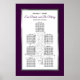 Ajoutez votre touche spéciale à ce design élégant avec script moderne, texte violet et noir, y compris un arbre de Noël en argent étoilé avec un cadre en argent métallique avec un arrière - plan violet. Ce tableau de sièges présente les noms de la mariée et du marié ainsi que les mots "Mangez, Buvez et Soyez Joyeux" et "S'il vous plaît, trouvez votre siège". Les modèles peuvent accueillir jusqu'à sept tables et jusqu'à 8 ou 9 noms par table.