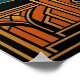 A sophisticated blend of nature and 1920s skyscraper architecture. This striking illustration features a bold black silhouette of a maple tree, its leaves forming a perfect canopy against a radiant gold sunburst. The tree rises from an intricate, tiered Art Deco base in warm orange and gold tones, framed by a majestic teal geometric archway. This opulent piece is perfect for adding a touch of Gatsby-era glamour to a modern office, study, or luxury living room.