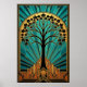 Elegant Art Deco Maple Tree Silhouette Gold Teal Poster