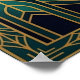 A graceful swan on a geometric lake with a rising sun. Soft orange and deep teal tones in a luxury 1920s style.