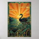 Elegant Art Deco Swan Sunset Lake Poster