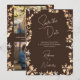 This stunning Autumn Wedding Save the Date has delicate yet vibrant Watercolor Wildflowers in a Copper Flame effect that almost seems to glow! The Modern Elegant Handwritten Script in Ivory is showcased by a rich Coffee Brown background. Add Your 2 Photos to the back, with the template. (This is especially suited for an evening autumn wedding.) It will leave quite the impression!