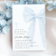 Elégante invitation au baptême qui présente un arc bleu élégant et une typographie élégante.
