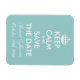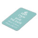 Elegant Behalten Ruhe speichern Sie das Datum Magnet für Hochzeit. Behalt Ruhe und mache Parodie, Personalisierbares Design mit dem Namen der Braut und Bräutigam. Aquamarin, weiß oder benutzerdefinierte Hintergrundfarbe. Schönes stylisches Mariage Thema.