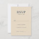 This elegant RSVP card features a minimalist design with a soft beige background and deep navy blue text, creating a sophisticated and timeless look. The layout is clean and spacious, with a prominent serif font for the "RSVP" heading and simple sans-serif fonts for the response options, ensuring clarity and readability. Customizable elements allow for personalization, making it perfect for formal events. The overall mood is refined and inviting, ideal for weddings or upscale gatherings where a touch of class is desired.