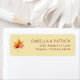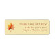 These return address labels feature a minimalist design with a warm beige background, complemented by an elegant watercolor maple leaf in autumnal hues of red, orange, and yellow. The layout is clean and balanced, with customizable text arranged in a classic serif font that adds sophistication to the overall look. Perfect for formal occasions or everyday use, these labels convey a sense of warmth and refinement through their earthy tones and simple composition.