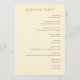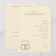 This elegant wedding program features a minimalist design with a soft beige background and classic serif typography, creating a warm and formal atmosphere. The layout is centered and balanced, showcasing the ceremony's events in a clear, organized manner. An illustration of interlocking rings adorned with intricate patterns adds a touch of sophistication, while small hearts connected by dotted lines provide subtle decorative detail. Perfect for couples seeking a traditional yet refined look, this program captures the essence of celebration and unity on their special day.