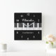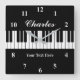 Elegant black and white grand piano key custom Square Wall Clock. Personalize with name, monogram, funny quote or slogan. Classy design for the kid's room, waiting room, music lessons school, hall way, shop, store, business center, company entrance, kitchen, study, office, clinic, salon, practice. Custom background color. Unique Birthday gift ideas for piano player, pianist, classical music teacher, musician, instructor, producer, artist, husband, wife, dad, mom, children etc. Trendy home decor accessories.