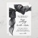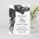 A black watercolor bow with flowing ribbon details sits in the top left corner, creating an elegant focal point with a painterly, organic feel. The ribbons extend gracefully across the top and down the left side of the card, adding movement while maintaining a calm, elevated aesthetic. The wedding text is placed in the bottom right, creating a beautifully balanced layout with plenty of open space.