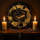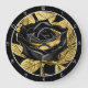 This sophisticated wall clock features a stunning black rose with opulent golden leaves and stem, set against a dark background. The luxurious design exudes elegance and mystery, making it a perfect statement piece for modern and chic interiors. Edit color of the clocks numbers in the Design tool to your favored colors.