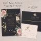 Elegant Black & Gold Roses Wedding Flat Menu Menükarte