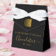 Elegant Black Gold Script Chocolatier Qr Code Geschenkschachtel