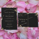 Le texte en or dans deux polices contrastées est contre un arrière - plan noir qui présente des flammes dorées de gossamer voyantes qui clignotent autour de coins alternatifs. Le texte est aligné de sorte qu'il est facile pour vous de saisir vos informations personnelles sur votre événement mariage. Les noms du couple et d'autres lignes sont dans une police de script élégante, tandis que le reste est une police sans serif compacte. Il comporte le libellé populaire "Ensemble avec leurs parents" mais peut être changé comme vous le souhaitez.