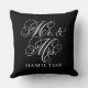 Elegant Black Mr. und Mrs. Script Custom Monogram Kissen