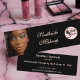 This elegant black mini business card is designed for makeup artists, salon professionals, and beauty entrepreneurs who want a sophisticated brand look. Featuring a stylish portrait design, graceful script font and classic soft pink typography this template blends modern elegance with professional clarity. The front showcases business name and logo alongside a customizable photo, while the reverse includes space for your name, position, address and contact details. Perfect for makeup artists, stylists or anyone in the beauty industry looking to create a memorable first impression.