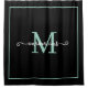 Elegant black and light teal bordar script minimalist name monogram shower curtain ,simple black and light teal monogram personalized name shower curtain .
