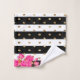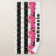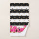 J'espère que vous apprécierez ces rayures noires et blanches avec des pois de parties scintillant faux or et des roses roses de Fuschia. Ajoutez un nom pour cet ensemble de serviettes de bain ou supprimez le nom de l'échantillon.