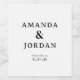 This elegant wedding wine label features a minimalist design with a clean, monochromatic color palette of black on white. The layout is vertically centered, emphasizing readability and balance through ample negative space and crisp typography. Bold serif fonts highlight the names, while smaller text provides location details, creating a sophisticated and formal aesthetic perfect for celebrating special moments. The modern style conveys understated elegance, making it an ideal choice for those seeking a timeless look for their event.