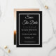Announce your wedding with timeless elegance using this black Save the Date card. The front features clean, refined typography for a classic, modern look, while the back is fully customizable with your favorite couple’s photo. A perfect choice for formal, minimalist, or luxury wedding themes.
