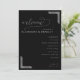 This elegant wedding program features a sophisticated black and white color palette, creating a timeless and classic feel. The design showcases a balanced layout with centered elements, including a flowing cursive script for the word "welcome" and bold serif fonts for the names, adding visual interest and readability. Decorative corner accents provide a touch of sophistication without overwhelming the clean lines and negative space. Perfect for formal weddings, this program conveys refinement and celebration through its tasteful typography and minimalist aesthetic.