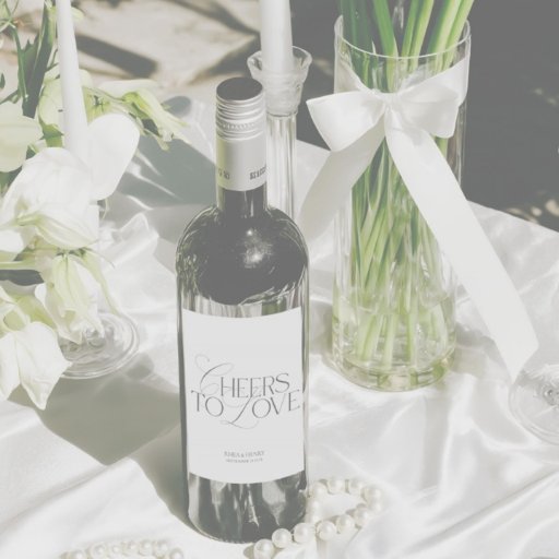 A sleek black and white mini champagne label featuring the playful phrase “Drunk in Love.”