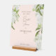 Arrière - plan blanc blanc Hydrangea Fête des mariées panneau acrylique de bienvenue. La typographie de l'or. Design moderne et police. Élégant.