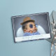 Faire-part de naissance bébé avec une grande photo entourée d'un cadre blanc propre sur lequel vous pouvez ajouter les noms et les statistiques de naissance du bébé en polices bleues. Au dos, ajoutez deux autres photos et par qui le bébé est accueilli.