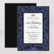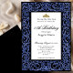 This elegant 18th birthday invitation has blue glitter scrollwork, a gold tiara crown, and a black background with a personalizable template to create your own message. The invitation template is customizable in the listing editor and is also available as a digital download that's printable after you personalize it. The formal design is a classic way to set an elegant tone for your milestone birthday celebration.