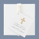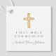 Personalisierte Elegant Blue Cross Boy First Communion Gefallen Tags. Teil der Dusty Blue Script Cross Boy First Communion Suite mit passender Einladung, Schreibwaren und erstem Communion Party Zubehör.