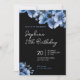 Elegant Blue & Black Floral 27th Birthday Invitation | Modern Classy Floral Party Invite