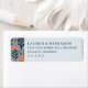 These return address labels feature a classic and sophisticated design with a soft blue-gray background, flanked by vertical floral patterns in shades of pink, coral, and yellow. The elegant serif font centers neatly on the label, offering customizable text for names, addresses, and zip codes. The symmetrical arrangement and harmonious color palette create an inviting and refined look, perfect for weddings or formal events. The minimalist aesthetic ensures clarity while adding a touch of vintage charm to your correspondence.