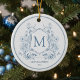 Mit diesem exquisiten, blau-weiß-französischen Zierschmuck im französischen Zierstil verleihen Sie Ihrem Urlaubsdekor eine Touch zeitloser Eleganz. Mit einem delikaten Wappen Vintager Blumenrollen und einem personalisierten Monogramm mit dem est. Datum in der Mitte bringt dieses Ornament den feinen Charme einer französischen Landschaft Noël in Ihren Weihnachtsbaum. Es wurde im Stil eines klassischen französischen Designs aus dem 18. Jahrhundert errichtet und ist der perfekte Ort, um ein besonderes Jahr zu begehen, eine neue Zuhause zu feiern oder jemandem zu schick und zeitlos zu schenken.