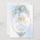 Elegant Blue Floral Gold 80th Birthday Invitation